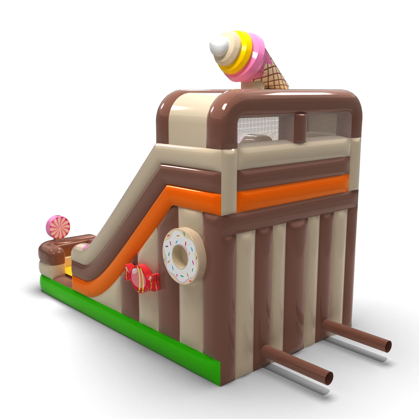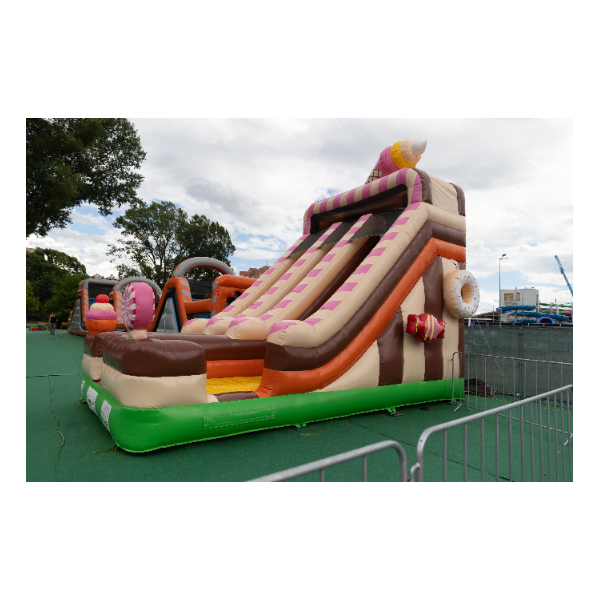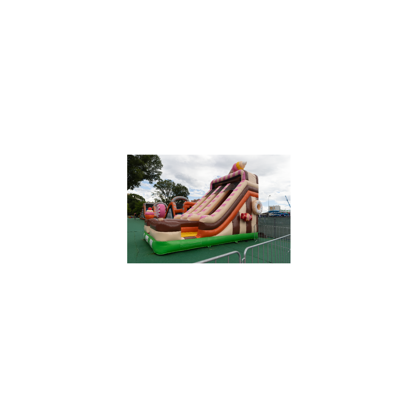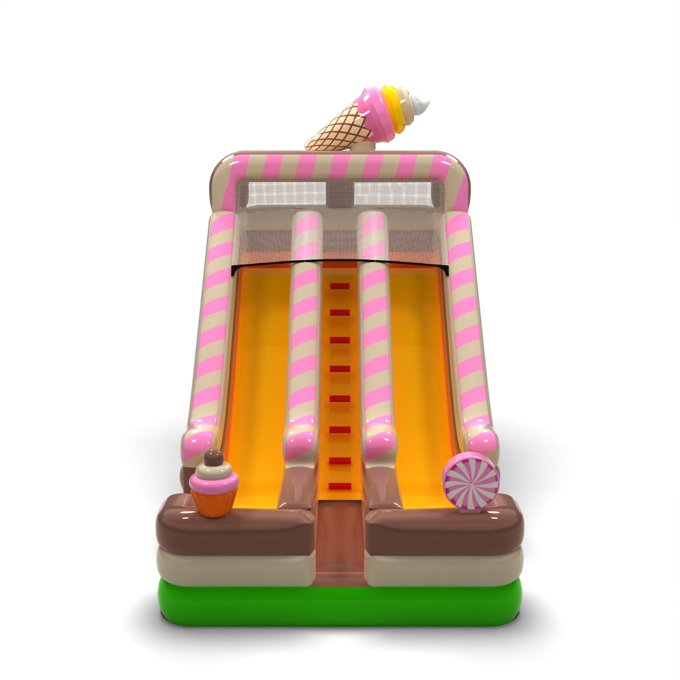 Podwójna dmuchana zjeżdżalnia z motywem cukierków to fantastyczny dmuchaniec dla dzieci i młodzieży. Świetnie sprawdzi się w zestawie z naszymi pozostałymi atrakcjami w różnych motywach. Podwójna dmuchana zjeżdżalnia z motywem cukierków wzbudza zainteresowanie dzieci, gdy tylko znajdzie się w zasięgu ich wzroku. Najmłodsi uczestnicy eventów przepadają za dobrą zabawą, dlatego ta zjeżdżalnia może być jednym z bardziej popularnych dmuchańców w Twojej ofercie. Dmuchańce z tej kategorii są efektowne, posiadają zwykle wiele zdobień i elementów, które zachęcają do podjęcia skocznej zabawy na świeżym powietrzu.