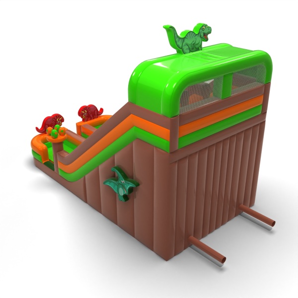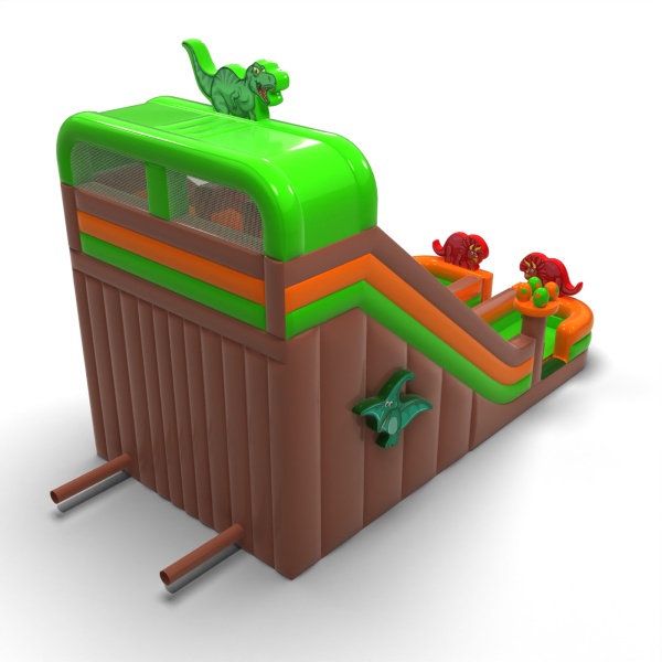 Imponująca wysokość i rozbudowana forma tworzą efektowną, jurajską atrakcję, która staje się jednym z głównych punktów wydarzenia. Dwa długie tory zjazdowe zapewniają intensywną zabawę i pozwalają obsłużyć dużą liczbę uczestników bez przestojów. Powiększona skala przekłada się na silne wrażenia wizualne i wyraźne poczucie „dużej atrakcji”, cenione na większych eventach. To propozycja dla wypożyczalni i agencji eventowych stawiających na sprzęt o wysokim potencjale zarobkowym i szerokim zastosowaniu. Atrakcja doskonale sprawdzi się na festiwalach, dniach miasta i dużych imprezach plenerowych, gdzie liczy się skala, widoczność i ciągły ruch uczestników.