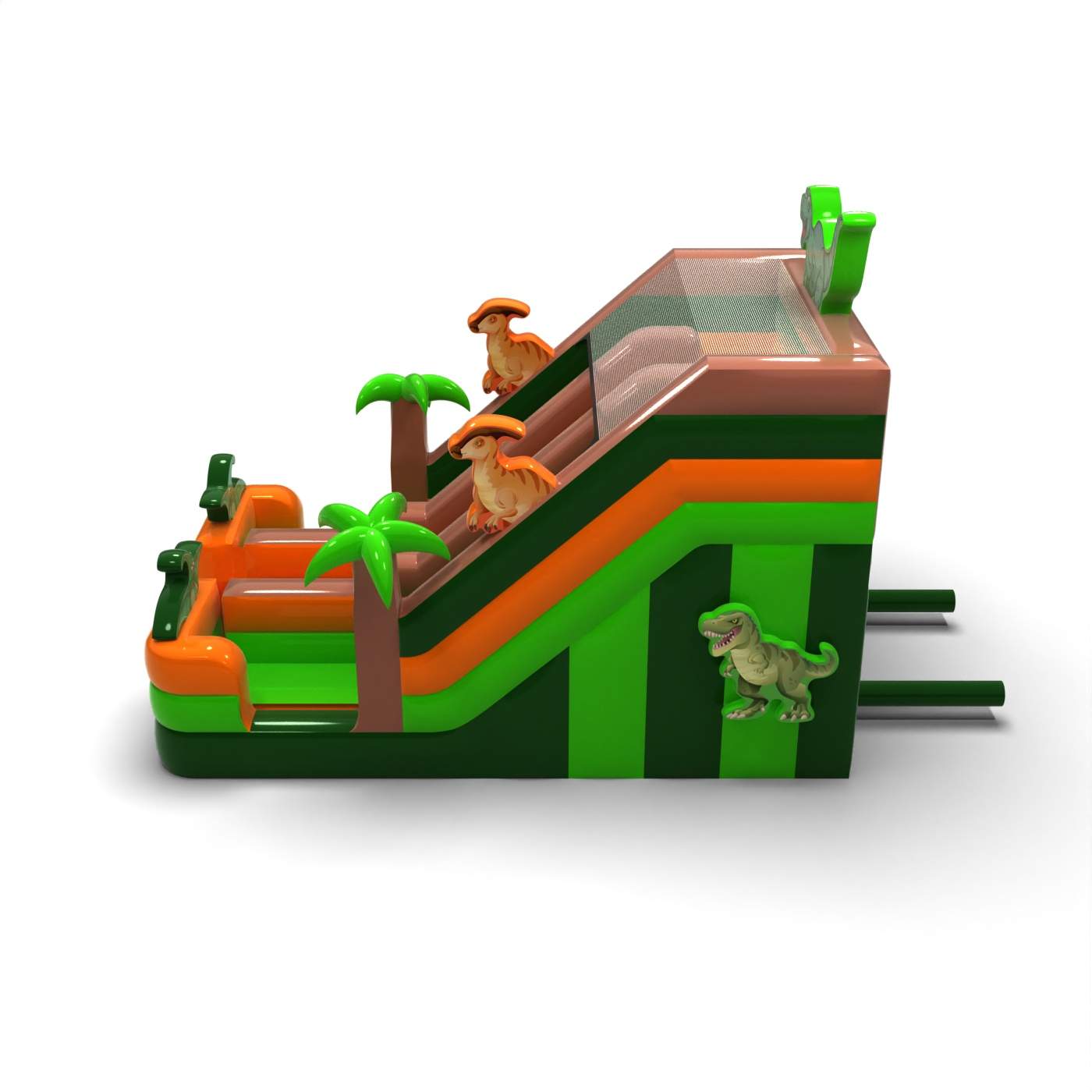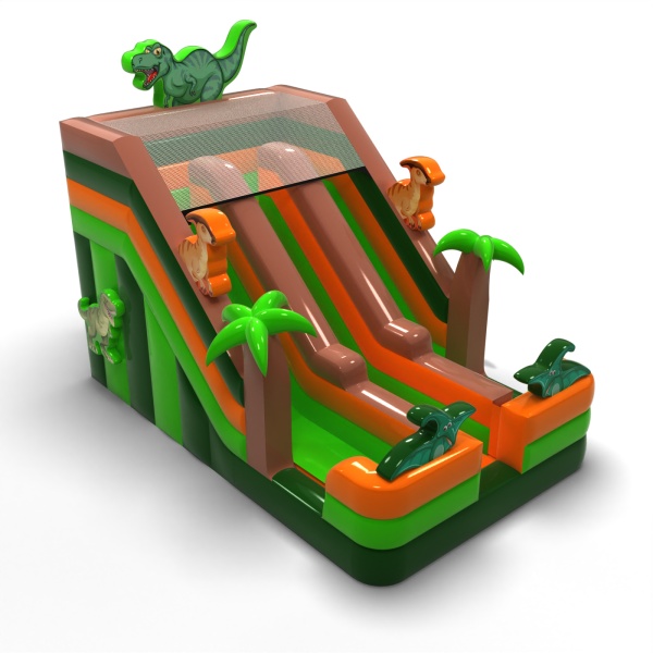 Podwójna zjeżdżalnia z motywem dinozaurów mini to fantastyczny dmuchaniec dla dzieci i młodzieży. Świetnie sprawdzi się w zestawie z naszymi pozostałymi atrakcjami w różnych motywach. Podwójna zjeżdżalnia z motywem dinozaurów mini wzbudza zainteresowanie dzieci, gdy tylko znajdzie się w zasięgu ich wzroku. Najmłodsi uczestnicy eventów przepadają za dobrą zabawą, dlatego ta zjeżdżalnia może być jednym z bardziej popularnych dmuchańców w Twojej ofercie. Dmuchańce z tej kategorii są efektowne, posiadają zwykle wiele zdobień i elementów, które zachęcają do podjęcia skocznej zabawy na świeżym powietrzu.