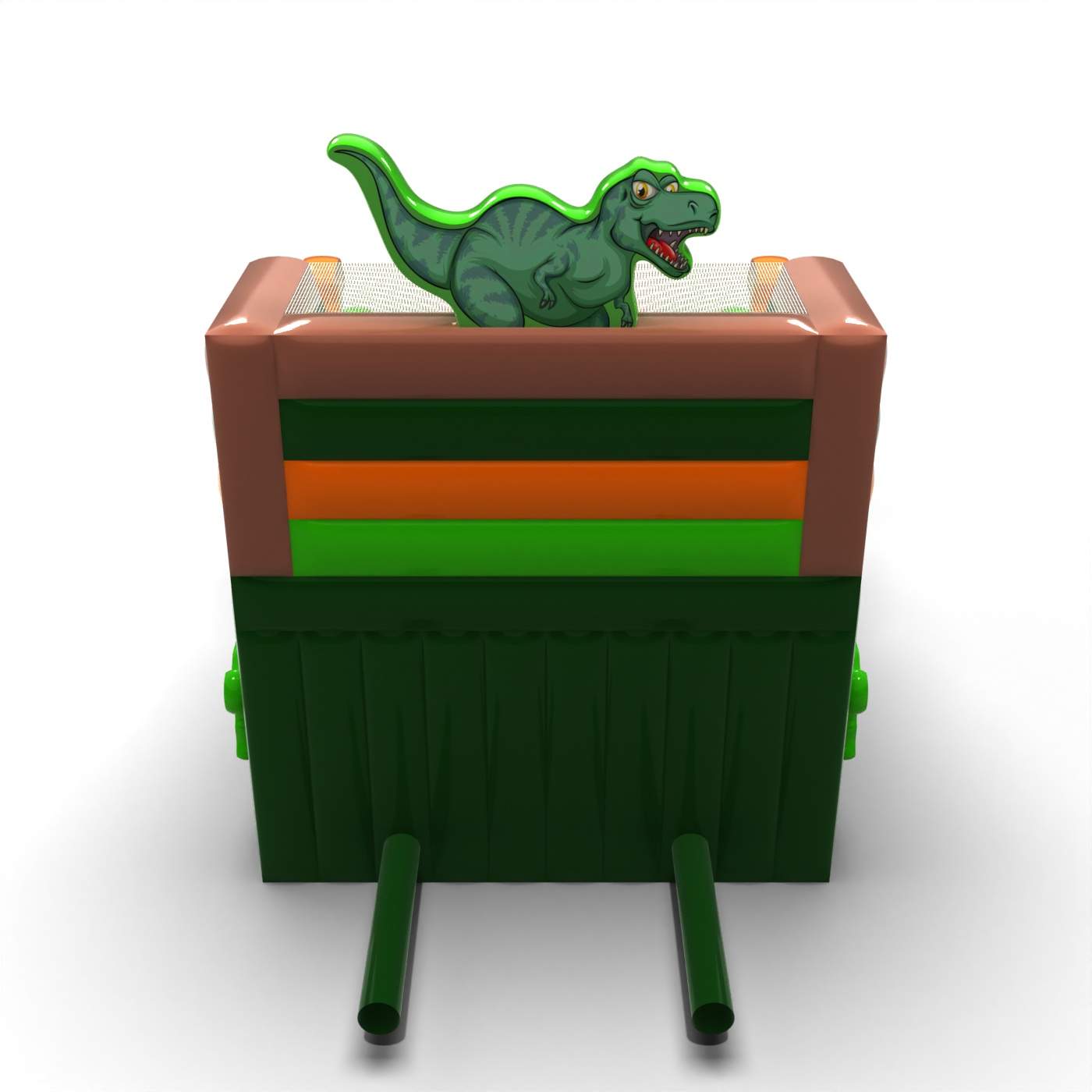 Kompaktowa zjeżdżalnia w dinozaurowej stylistyce łączy wyraźny efekt wizualny z formą dopasowaną do mniejszych przestrzeni eventowych. Dwa równoległe tory zjazdowe pozwalają dzieciom bawić się jednocześnie, zwiększając płynność zabawy i skracając czas oczekiwania. Jurajski klimat buduje poczucie przygody i sprawia, że atrakcja szybko przyciąga uwagę najmłodszych uczestników. Mniejszy format czyni ten model praktycznym wyborem dla wypożyczalni obsługujących krótsze realizacje i kameralne wydarzenia. Atrakcja sprawdzi się na festynach lokalnych, piknikach rodzinnych i animacjach plenerowych, gdzie liczy się mobilność, dynamika i rozpoznawalny motyw.