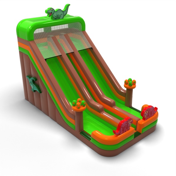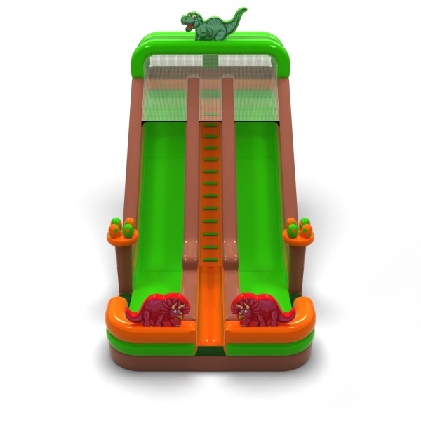 Podwójna powiększona zjeżdżalnia dmuchana w motywie dinozaurów