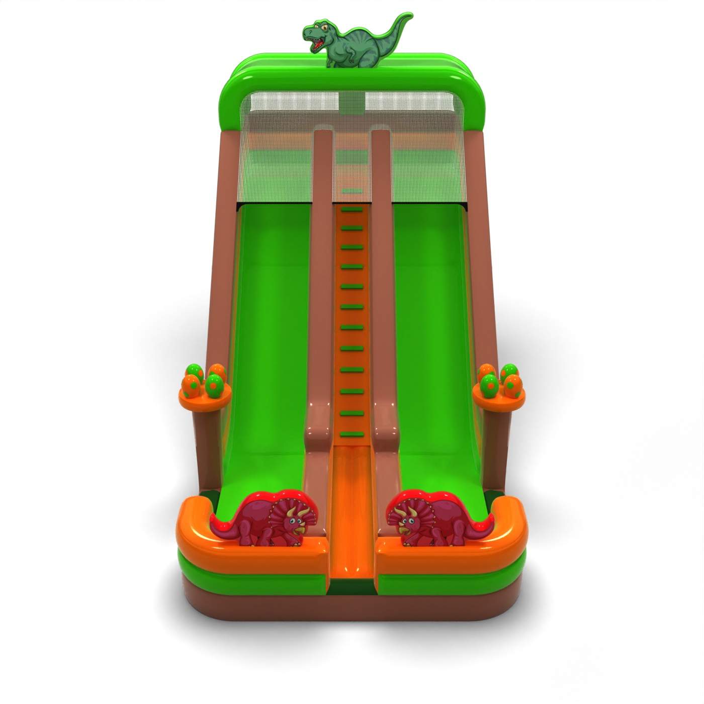 Imponująca wysokość i rozbudowana forma tworzą efektowną, jurajską atrakcję, która staje się jednym z głównych punktów wydarzenia. Dwa długie tory zjazdowe zapewniają intensywną zabawę i pozwalają obsłużyć dużą liczbę uczestników bez przestojów. Powiększona skala przekłada się na silne wrażenia wizualne i wyraźne poczucie „dużej atrakcji”, cenione na większych eventach. To propozycja dla wypożyczalni i agencji eventowych stawiających na sprzęt o wysokim potencjale zarobkowym i szerokim zastosowaniu. Atrakcja doskonale sprawdzi się na festiwalach, dniach miasta i dużych imprezach plenerowych, gdzie liczy się skala, widoczność i ciągły ruch uczestników.