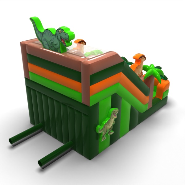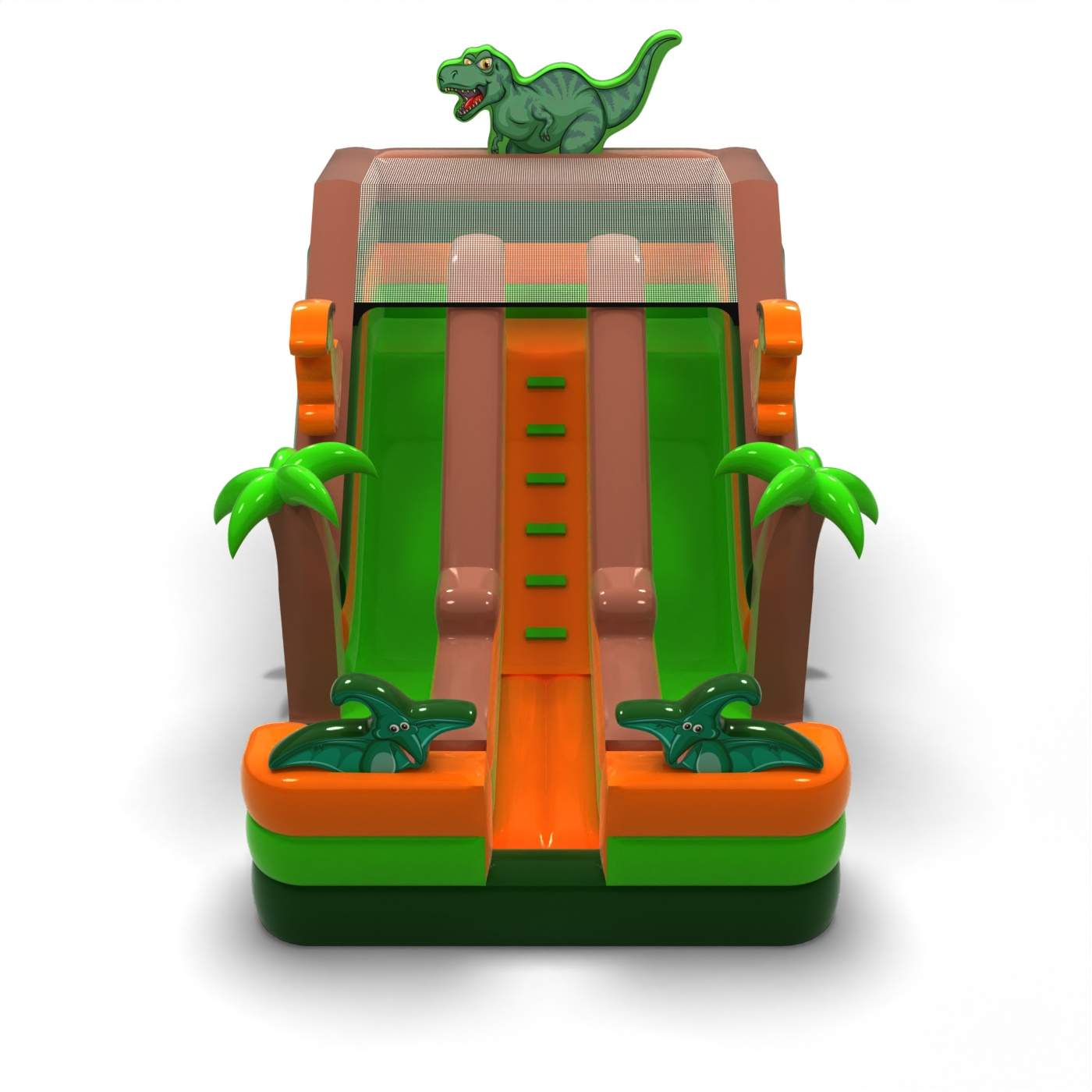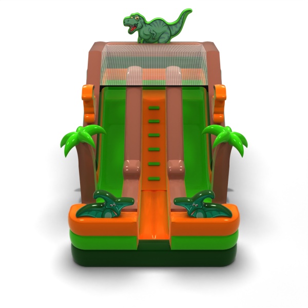 Podwójna zjeżdżalnia z motywem dinozaurów mini to fantastyczny dmuchaniec dla dzieci i młodzieży. Świetnie sprawdzi się w zestawie z naszymi pozostałymi atrakcjami w różnych motywach. Podwójna zjeżdżalnia z motywem dinozaurów mini wzbudza zainteresowanie dzieci, gdy tylko znajdzie się w zasięgu ich wzroku. Najmłodsi uczestnicy eventów przepadają za dobrą zabawą, dlatego ta zjeżdżalnia może być jednym z bardziej popularnych dmuchańców w Twojej ofercie. Dmuchańce z tej kategorii są efektowne, posiadają zwykle wiele zdobień i elementów, które zachęcają do podjęcia skocznej zabawy na świeżym powietrzu.