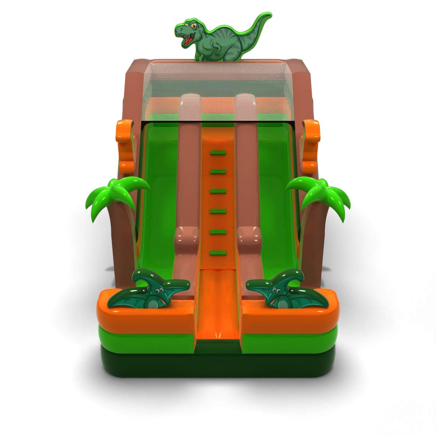 Podwójna zjeżdżalnia z motywem dinozaurów mini to fantastyczny dmuchaniec dla dzieci i młodzieży. Świetnie sprawdzi się w zestawie z naszymi pozostałymi atrakcjami w różnych motywach. Podwójna zjeżdżalnia z motywem dinozaurów mini wzbudza zainteresowanie dzieci, gdy tylko znajdzie się w zasięgu ich wzroku. Najmłodsi uczestnicy eventów przepadają za dobrą zabawą, dlatego ta zjeżdżalnia może być jednym z bardziej popularnych dmuchańców w Twojej ofercie. Dmuchańce z tej kategorii są efektowne, posiadają zwykle wiele zdobień i elementów, które zachęcają do podjęcia skocznej zabawy na świeżym powietrzu.
