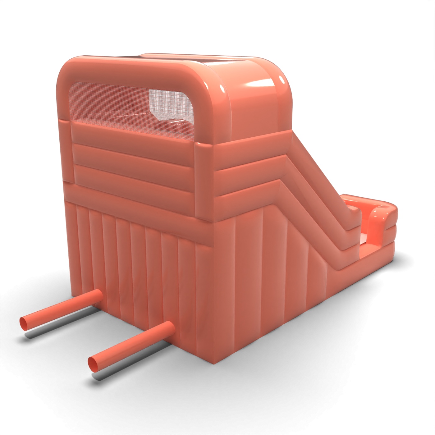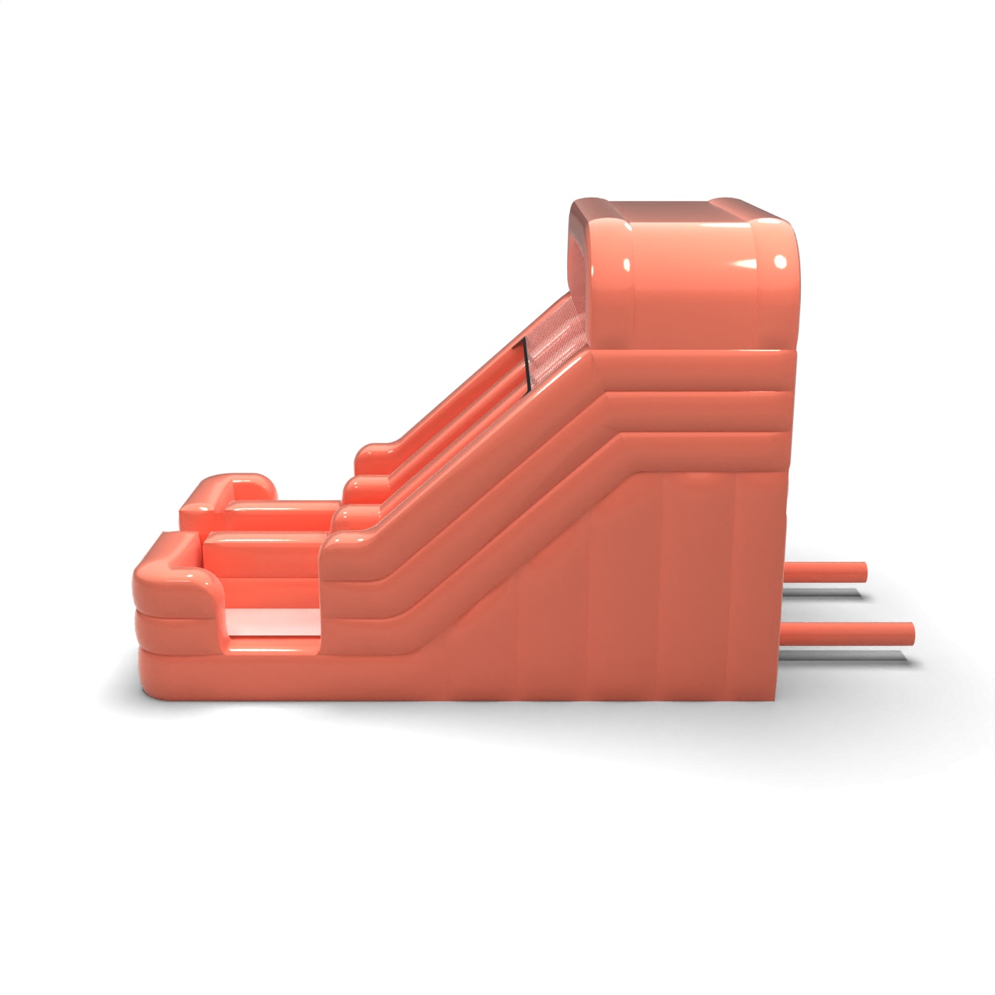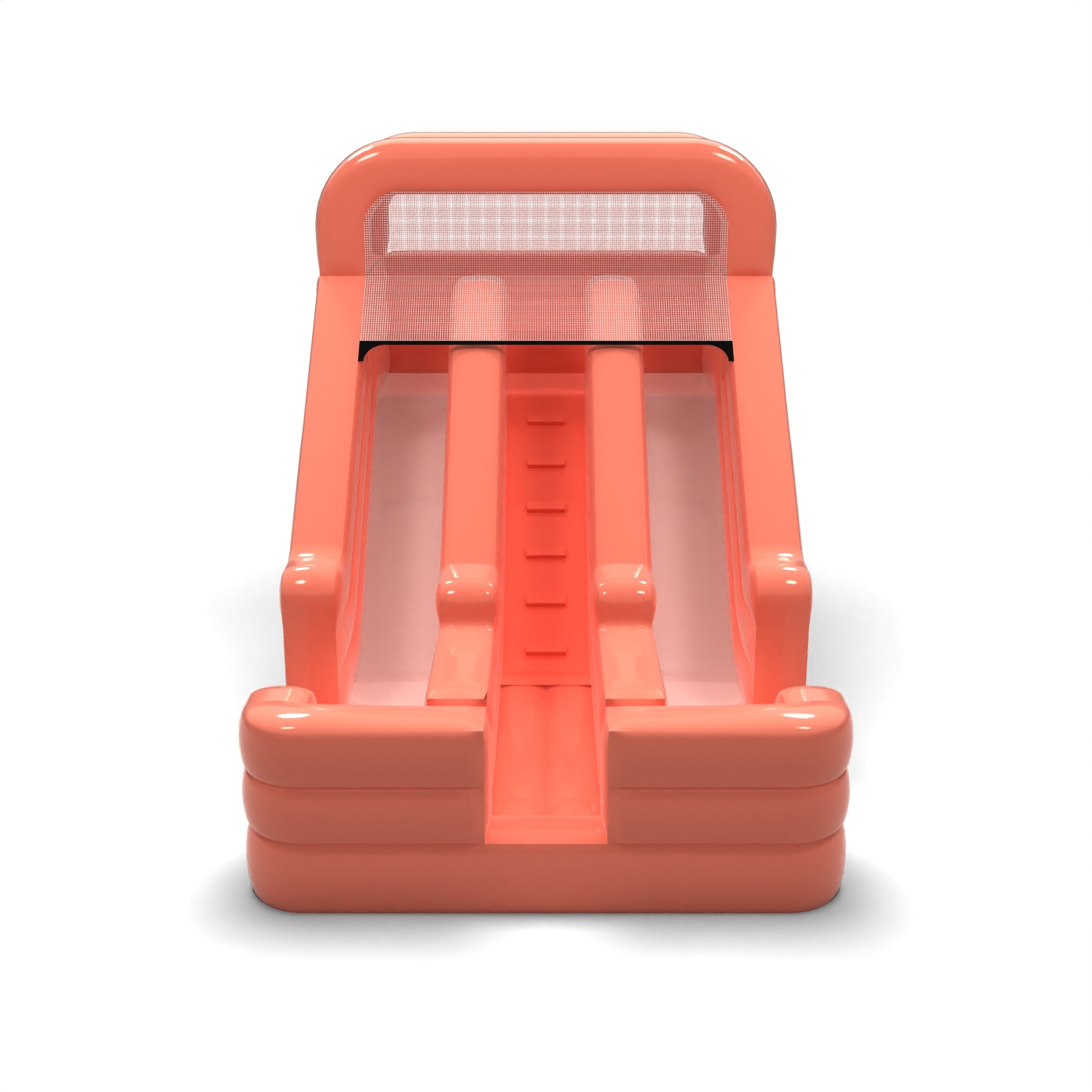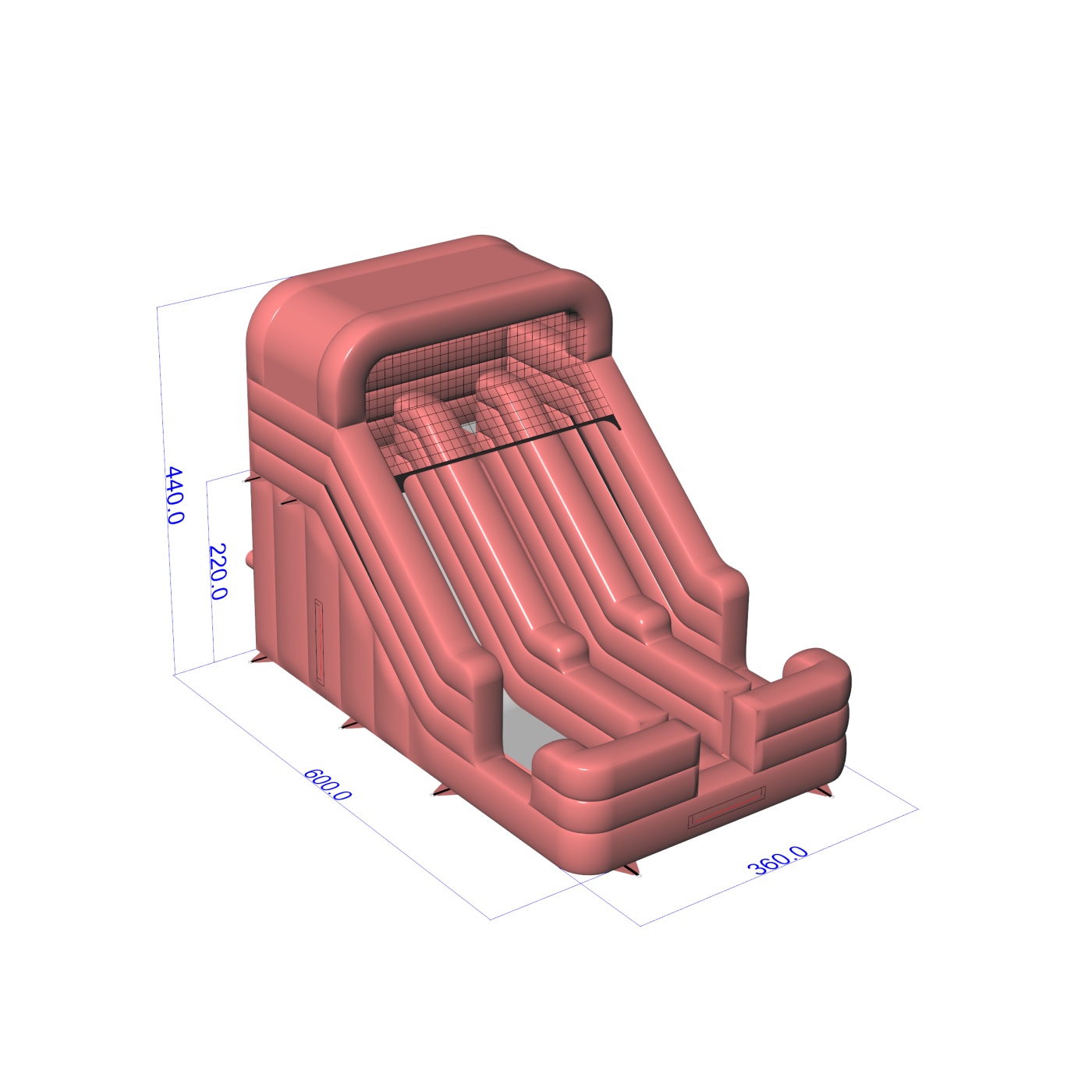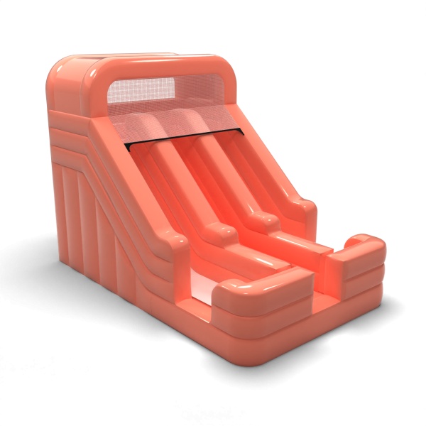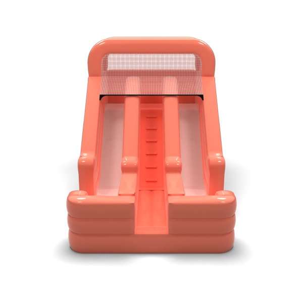 Stonowany odcień brudnego różu nadaje tej zjeżdżalni nowoczesny i uporządkowany wygląd, który wyróżnia się na tle klasycznych, intensywnych konstrukcji. Dwa równoległe tory umożliwiają prowadzenie zabawy w dynamicznym tempie, co jest istotne przy większym ruchu dzieci. Stabilna platforma startowa i wyraźnie wydzielona strefa lądowania sprzyjają bezpiecznej i płynnej organizacji zjazdów. To propozycja dla wypożyczalni i firm eventowych, które obsługują zarówno prywatne uroczystości, jak i mniejsze wydarzenia firmowe. Model sprawdzi się na festynach osiedlowych, piknikach rodzinnych i eventach w przestrzeniach półotwartych.