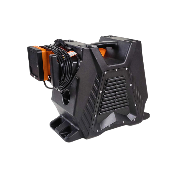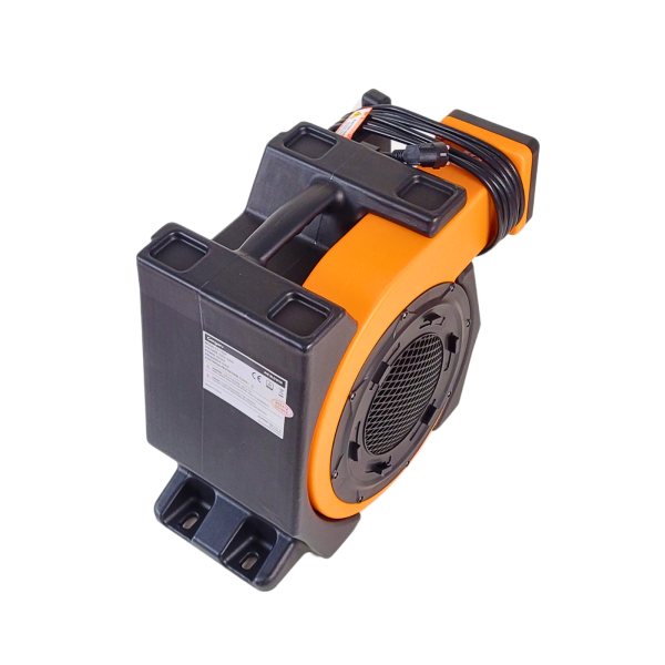 Kompaktowa i wydajna dmuchawa o mocy 1800W, idealna do średnich i mniejszych dmuchańców wykorzystywanych w eventach plenerowych i strefach zabaw. Przystosowana do intensywnego użytku, wyposażona w zintegrowany kabel i zabezpieczenia włącznika przed zabrudzeniem i wilgocią. Jej odporna obudowa i możliwość sztaplowania sprawiają, że to praktyczne narzędzie dla każdego wynajmującego. Stały przepływ powietrza bez przegrzewania gwarantuje niezawodne działanie przez wiele godzin – także w zamkniętych przestrzeniach.