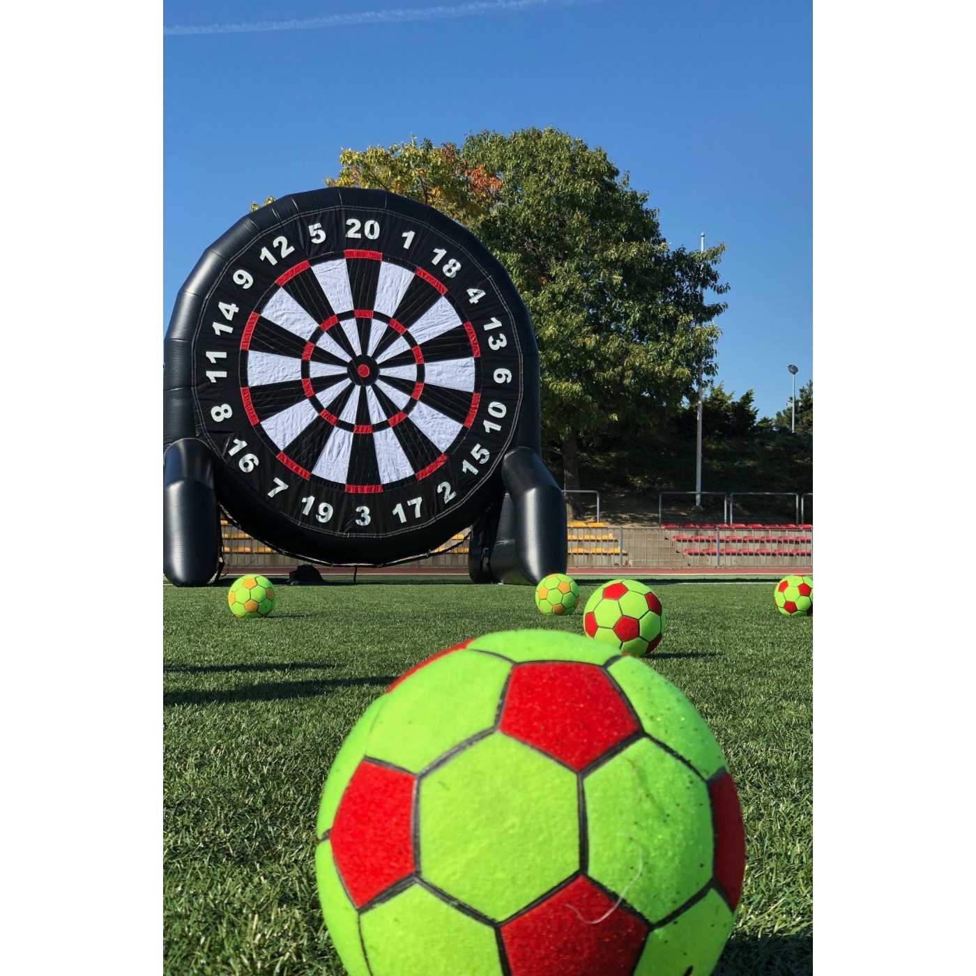 Używana, dwustronna dmuchana tarcza Football Darts – emocjonująca atrakcja na każdą imprezę plenerową! Idealna do rywalizacji zarówno dla dzieci, jak i dorosłych, łączy celność rzutów z piłkarską precyzją. Sprawdzony model w bardzo dobrym stanie, gotowy do dalszego użytkowania na festynach, eventach firmowych czy integracjach, zapewniając mnóstwo zabawy i śmiechu!