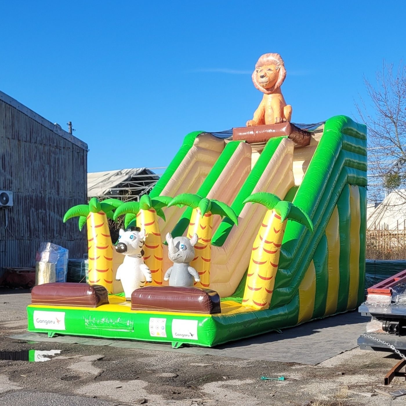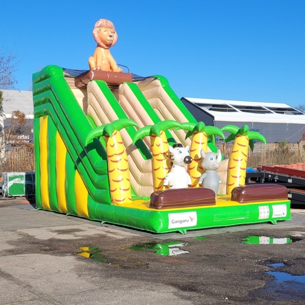 Używana podwójna dmuchana zjeżdżalnia z motywem dżungli pochodzi z kategorii dmuchańców używanych – czyli rozwiązań, które łączą dobrą jakość z jeszcze lepszą ceną. To idealna opcja dla wypożyczalni, parków rozrywki i firm eventowych, które chcą rozszerzyć ofertę bez przepalania budżetu. W ofercie znajdziesz nie tylko klasyczne zamki i tory przeszkód, ale też mniej oczywiste atrakcje, takie jak zestawy sportowe, kule do zderzeń czy zjeżdżalnie wodne. Wszystkie produkty są sprawne technicznie, gotowe do pracy i mogą zacząć zarabiać od razu po zakupie.