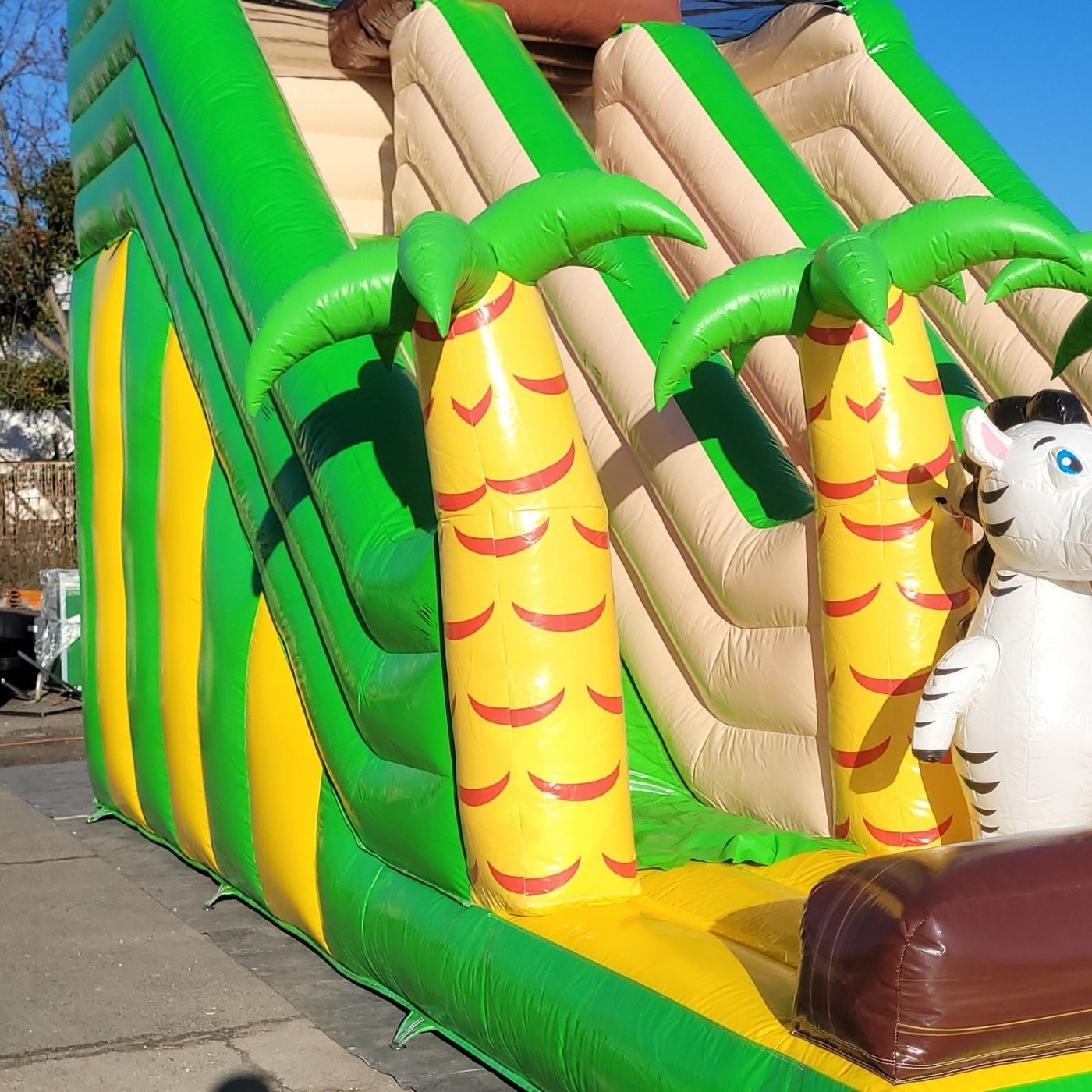 Używana podwójna dmuchana zjeżdżalnia z motywem dżungli