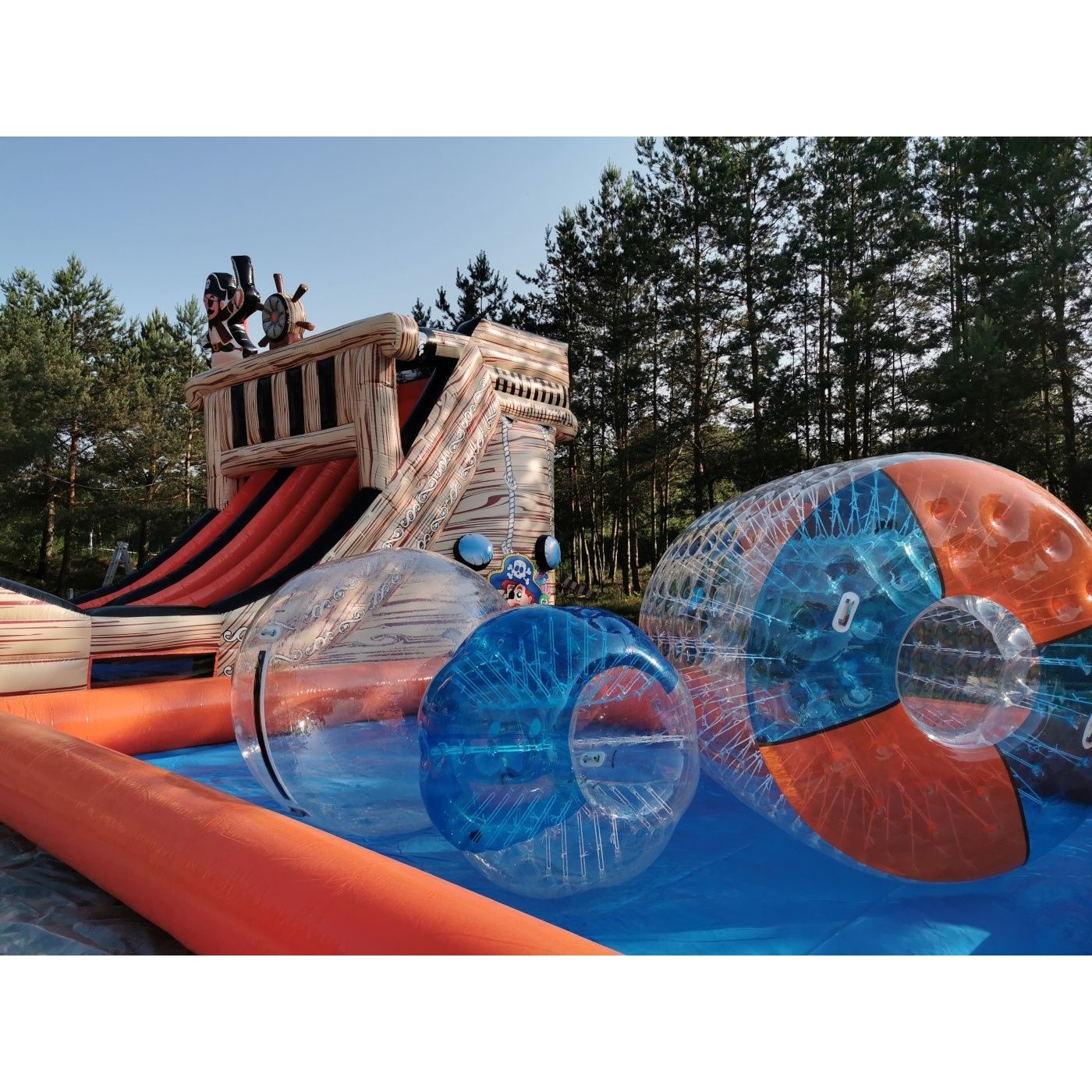 Walce i kule wodne idealnie sprawdzą się w połączeniu z basenami wodnymi. Wodny walec jest atrakcją dla osób, które cechują się dużym refleksem. Walec wodny pozostawiony na tafli wody jest bardzo ruchliwy, przez co zabawa w nim potrafi być źródłem śmiechu nie tylko samego uczestnika, ale także obserwatorów. Spróbuj utrzymać równowagę i przebiegnij wewnątrz walca wodnego określony odcinek. Kula wodna (inaczej water ball) jest przeznaczona dla dzieci i młodzieży. Sprawdź czy potrafisz utrzymać się na nogach, będąc zamkniętym w dmuchanej kuli wodnej. Kula wodna przymocowana do liny nie pozwoli, by uczestnik świetnej zabawy odpłynął zbyt daleko na otwartym akwenie wodnym. Wodne kule można wykorzystać jednakowo w basenie wodnym, a także na jeziorach czy szerokich, spokojnych wodach. Walce i kule wodne niezaprzeczalnie stanowią idealne połączenie rozrywki i rywalizacji w środowisku wodnym. Zapewnij wszystkim uczestnikom imprezy niezapomniane wrażenia i zainwestuj w wodne kule oraz walce.